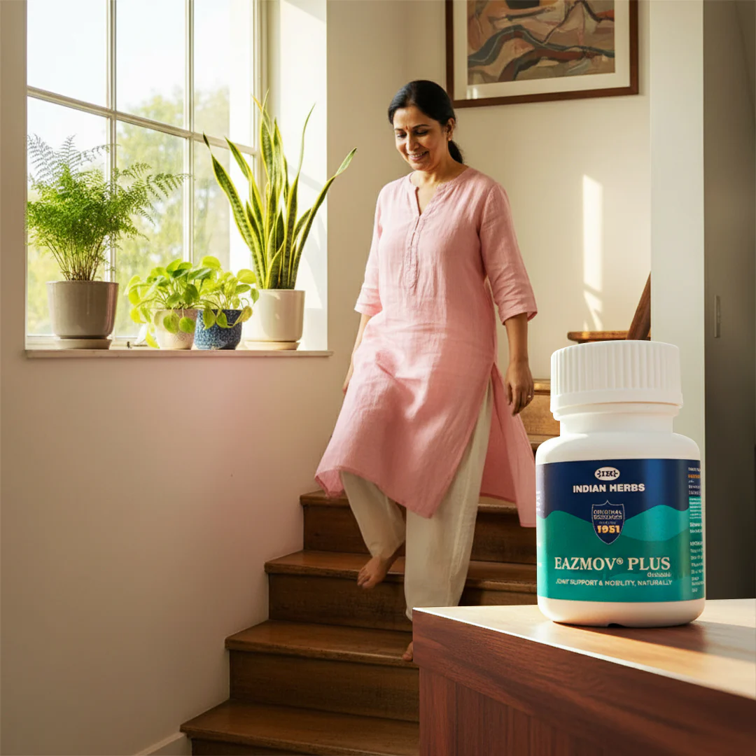 The herbal formulation EazMov Plus helps to control degenerative process while providing relief from pain and inflammation in arthritic conditions without causing gastric ulceration and any disturbance in hepatic, renal and cardiac functions. EazMov Plus also enhances bio-synthesis and active production of glycosaminoglycans (GAGs) and mucopolysaccharides which, as components of cartilage matrix, help in repair, maintenance and growth of cartilage and prevent degeneration of chondrocytes and articular cartilage. EazMov Plus helps to improve the quality and content of hyaluronic acid in all layers of synovial membrane and cartilage with improvement in mucin clot quality. EazMov Plus prevents the excessive calcification of cartilage and improves proliferation of blood vessels through the thinned calcified layer. It helps to normalize and maintain relative viscosity, biochemical character and enzymic activity of synovial fluid. Thus EazMov Plus modifies the disease process and facilitates the regeneration and quick healing of synovial membrane and articular cartilage by improving their nutrition and blood supply to quickly restore joint mobility. EazMov Plus is selective and potent inhibitor of neutrophil oxidative burst and thus controls the degenerative process in Osteoarthritis and successfully modifies the disease process to help control the titres of RA factor to initiate remission in Rheumatoid arthritis. It is non-ulcerogenic and safe for G.I. mucosa and it can be used with NSAID's, in acute conditions.